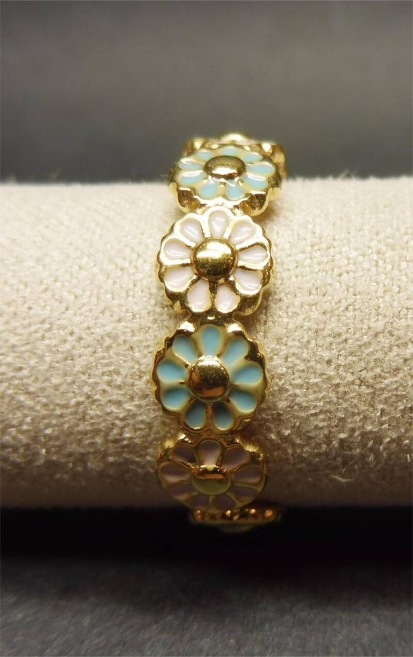 Bloem ring roze met mint/blauw