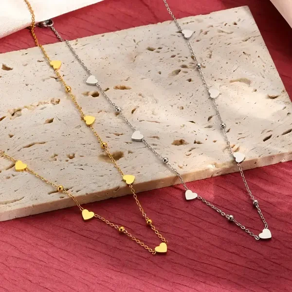 Nieuw in ons assortiment deze prachtige ketting dubbel hart met de trend van deze zomer, hartjes. Hoe leuk zijn de hartjes groot en klein in je oren, om je hals, arm of vinger. Soms met wat meer kleur of geheel in zilverkleurig of goudkleurig. Verstelbaar in maat en naar wens.